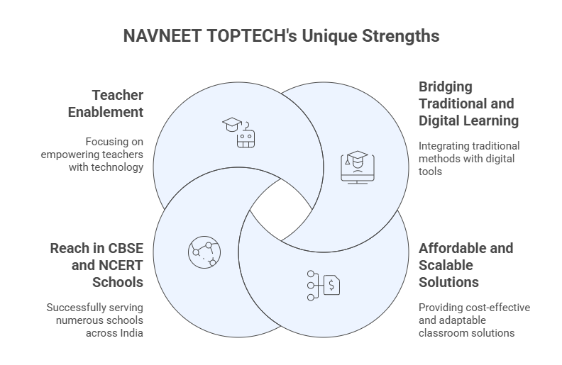 For over a decade, NAVNEET TOPTECH has been redefining how classrooms function. Its solutions, such as TopSchool LMS, TopClass, and TopAssess, together form a connected ecosystem designed to make learning smarter, simpler, and more effective.