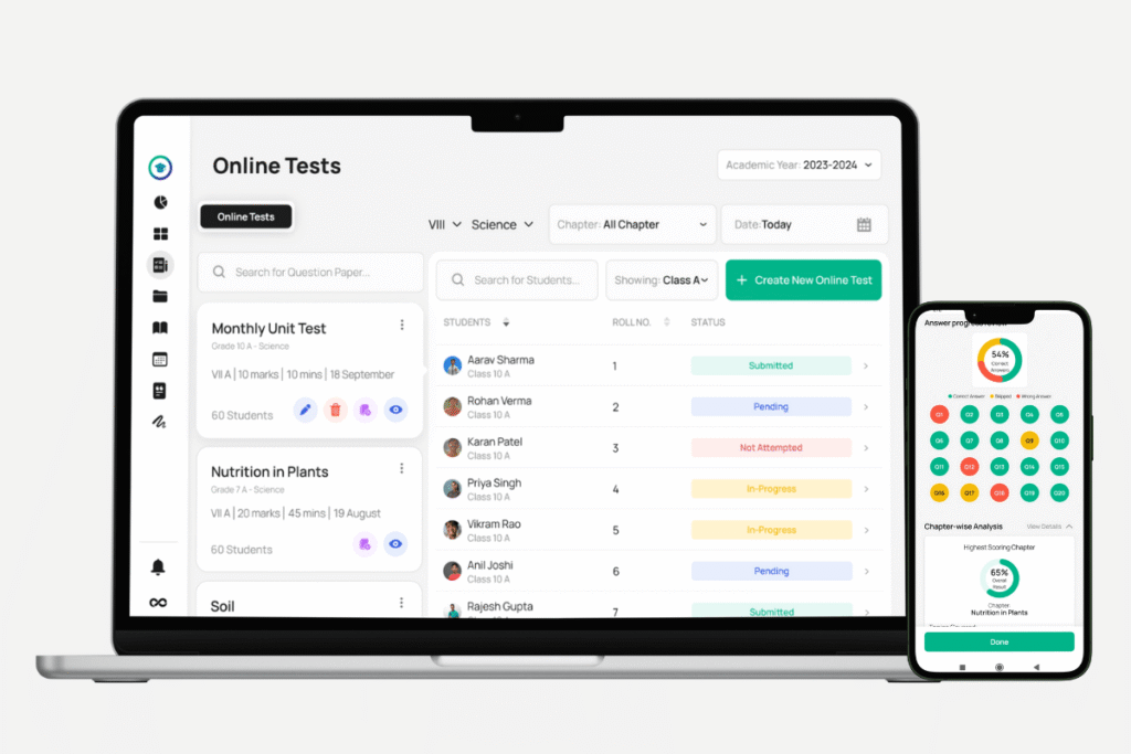 It supports formative and summative assessments, ensuring high-quality, curriculum-aligned question papers and insightful performance reports for students and teachers.